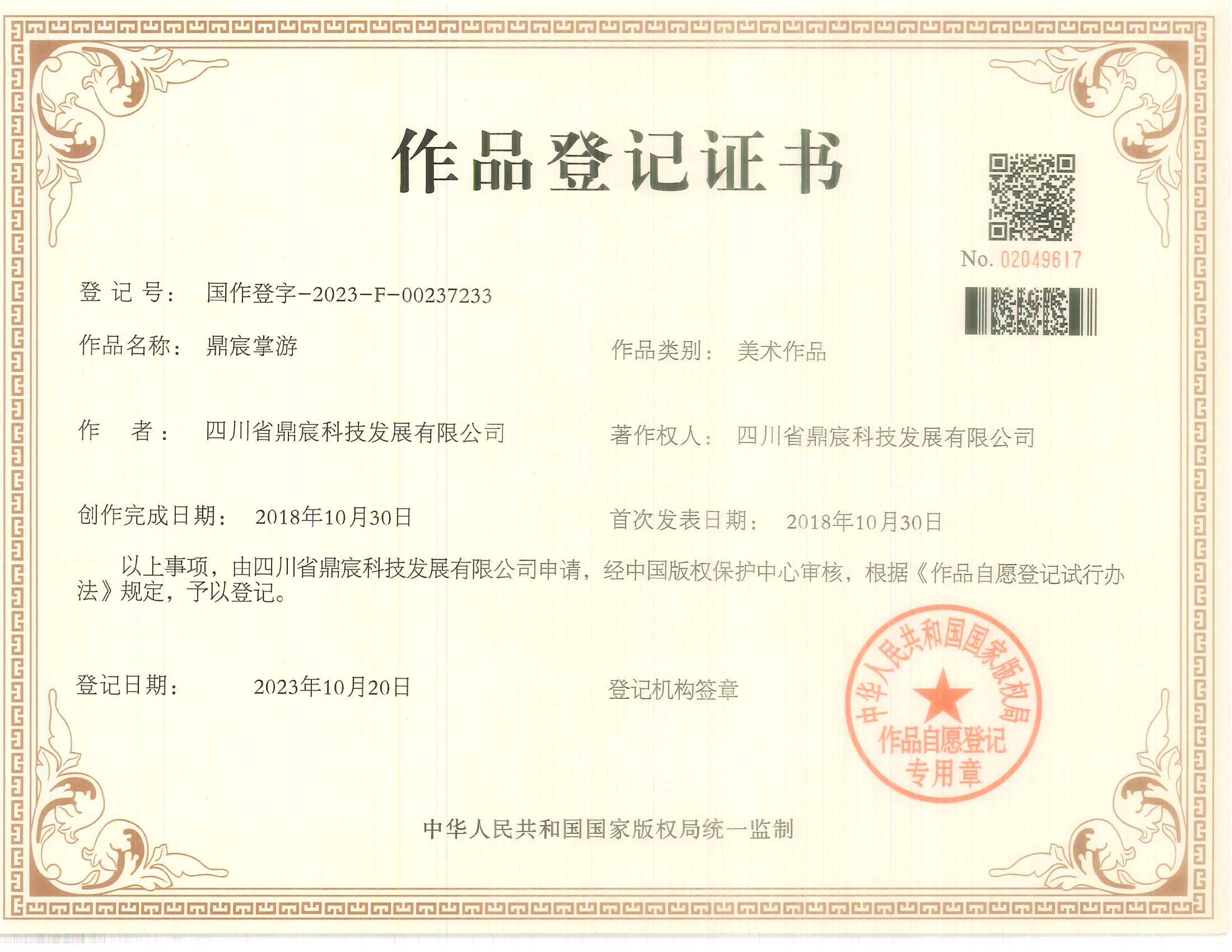 20231020作品登记证书-掌游成都(美术作品)