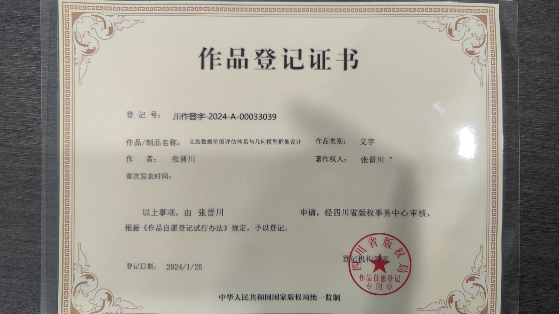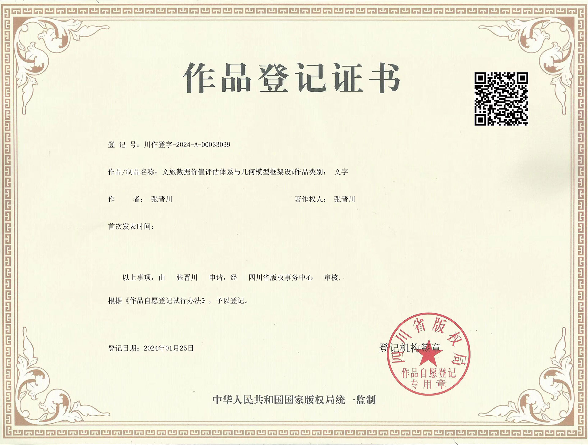 20240125作品登记证书-文旅数据价值评估体系与几何模型框架设计