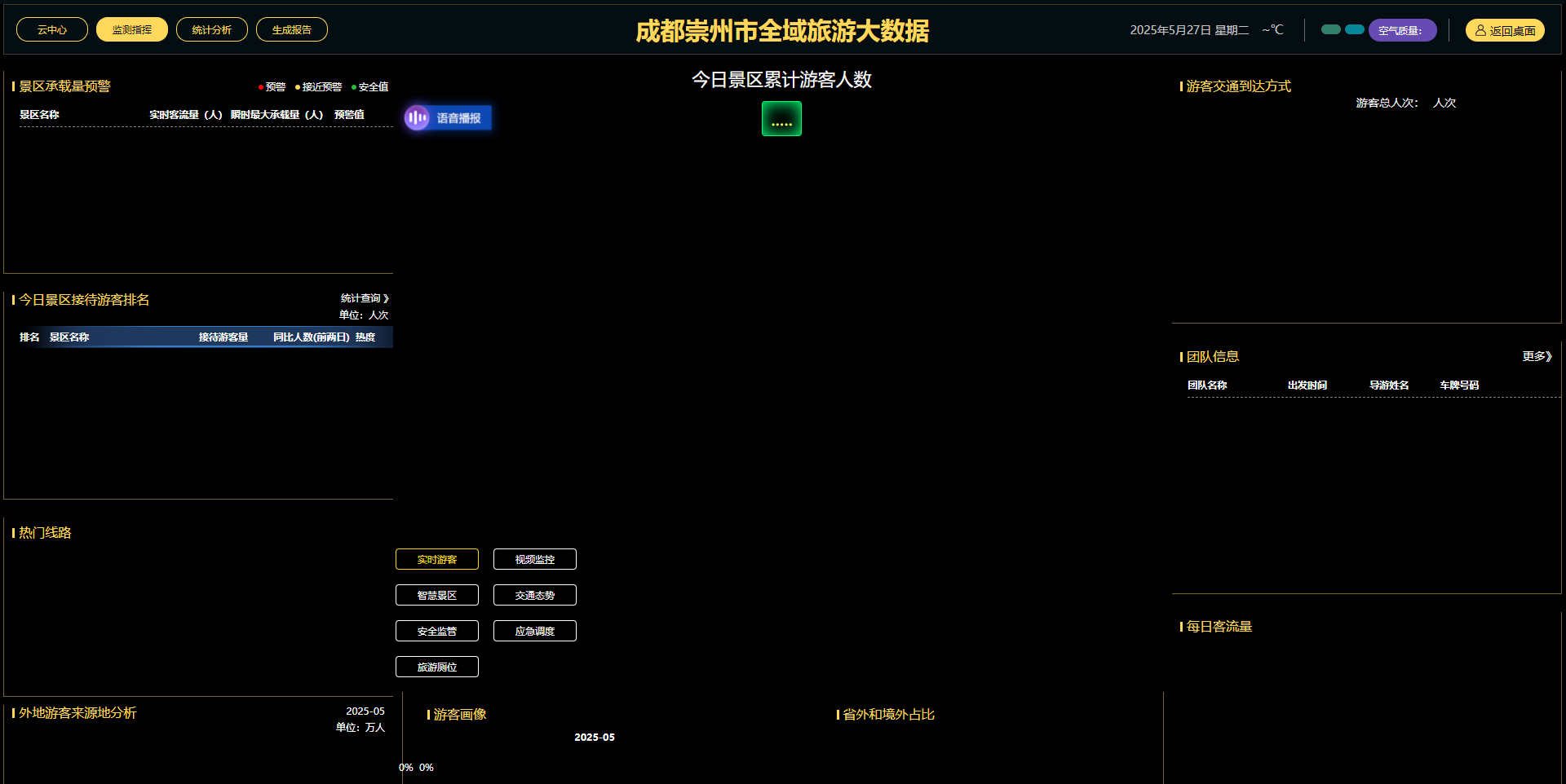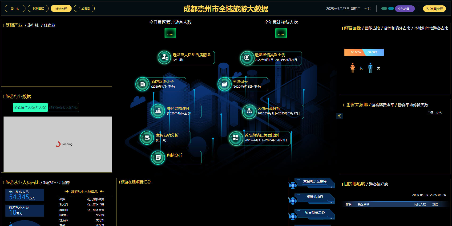 崇州市全域旅游大数据支点平台依托成都大数据核心框架,运用先进信息化技术手段实现对旅游行业的动态监管,对旅游产品的宣传推广和对旅游数据的统计分析,形成规范化的区域核心框架体系,标准化的区域数据结构,整合区域业务应用,深化旅游企业转型升级,加强旅游资源整合和模式创新,把旅游大数据支点平台建设成为崇州市服务业的新动力,产学研信息高地。